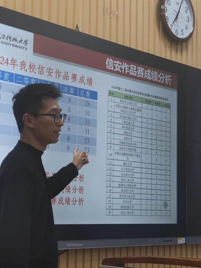 秦远贺学长生动形象地向同学们介绍了密码赛的组队要求、办赛情况、比赛题目、比赛形式等内容。他以自己的经历为切入点,以图片为形式,层层深入地讲解了比赛的流程和方向,让同学认识到了密码竞赛的前景和未来,充分激发了同学们对密码竞赛的好奇和关心。在互动环节中,学长耐心解答了同学们关于比赛准备、团队合作以及提高密码技术能力等方面的疑问。