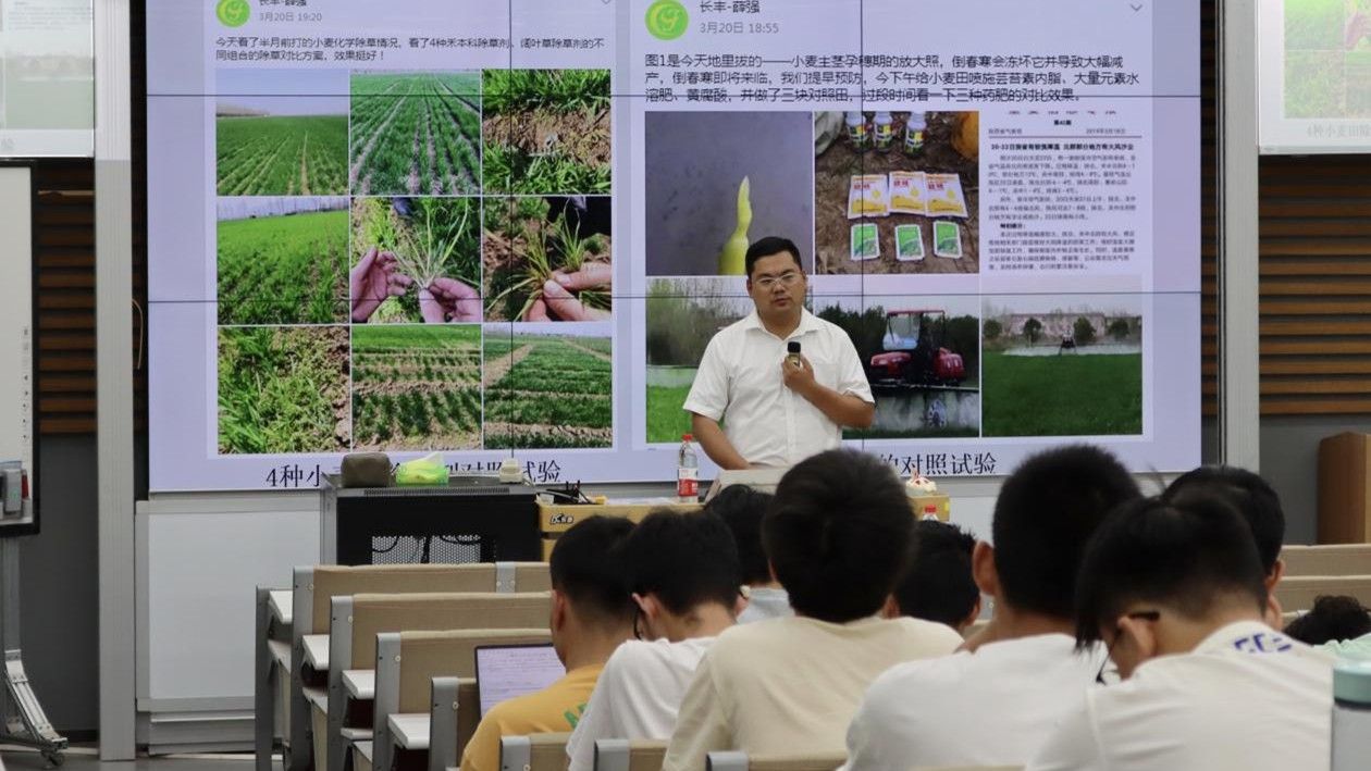 报告会上,薛强老师用质朴的语言、生动的案例,深情讲述了自己从老员工到返乡助农带头人的奋斗历程。他回忆,自己从西安工业大学毕业后,他毅然放弃城市里优渥的工作机会,选择回到家乡,致力成为一名“新农人”,从父亲手中接管合作社,开启种粮之旅。起初,他面临着诸多外界质疑与技术难题,但他没有退缩,通过刻苦钻研、虚心学习,逐渐成长为懂技术、善经营的高级职业农民。