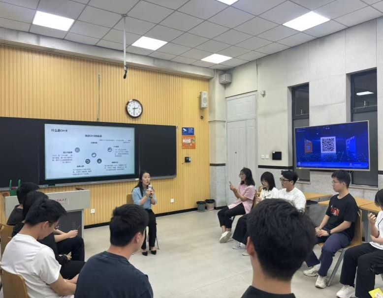 破冰游戏之后,强媛媛老师为同学们分发了OH卡,引导大家进入自我探索的环节。这些卡片帮助大家揭示潜意识中隐藏的想法与感受。在沉思与分享的过程中,同学们得以发现更多平时被忽视的内心世界。这种深入的自我探索不仅帮助大家认识自身优势,还增强了自信心。