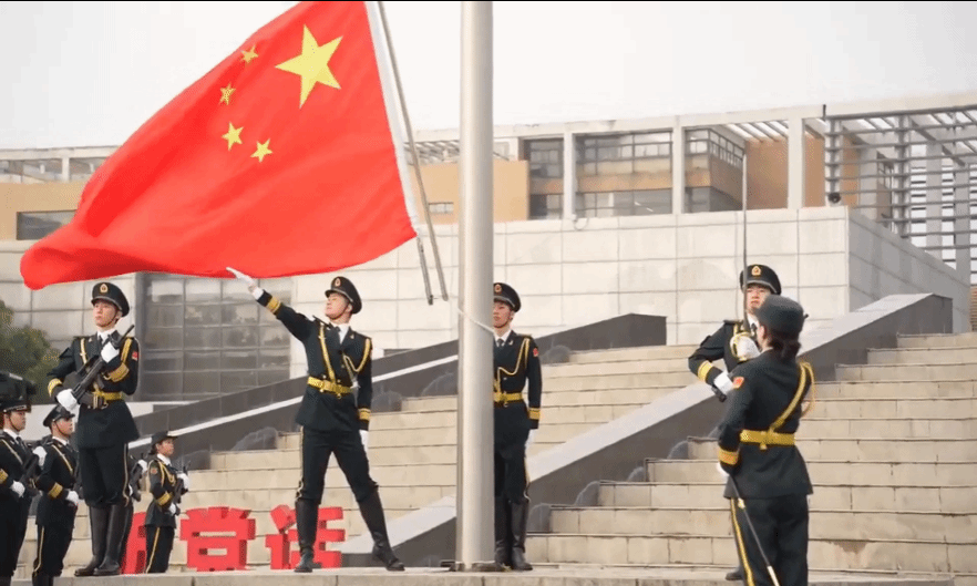 炯炯的目光,凝视着鲜艳的五星红旗,