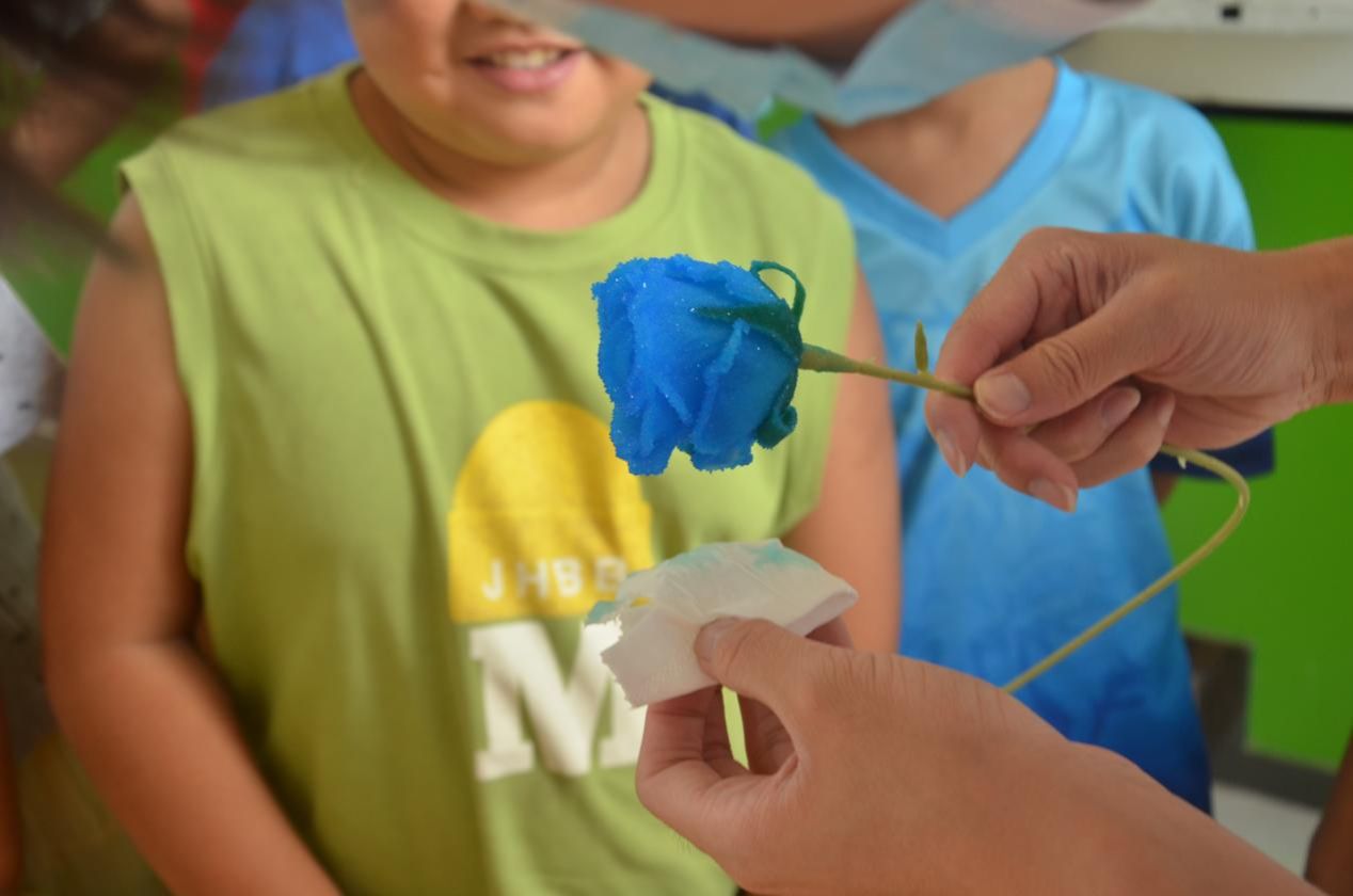 在硫酸铜晶体玫瑰制作课堂上,科学与艺术的完美融合让孩子们惊叹连连。支教队员先向孩子们介绍了硫酸铜晶体的形成原理和生长过程,让他们了解到看似普通的化学物质在特定条件下能创造出令人惊叹的美。随后,孩子们在队员的指导下,小心翼翼地将硫酸铜晶体溶液倒入特制的模具中,经过一段时间的耐心等待,一朵朵晶莹剔透、宛如蓝宝石般的硫酸铜晶体玫瑰逐渐成型。当孩子们手捧着自己亲手制作的晶体玫瑰时,眼中满是喜悦和自豪。这一课程不仅让孩子们体验到了科学实验的乐趣,更培养了他们的耐心和细心,让他们明白,只要用心去探索和实践,就能创造出美好的事物。
