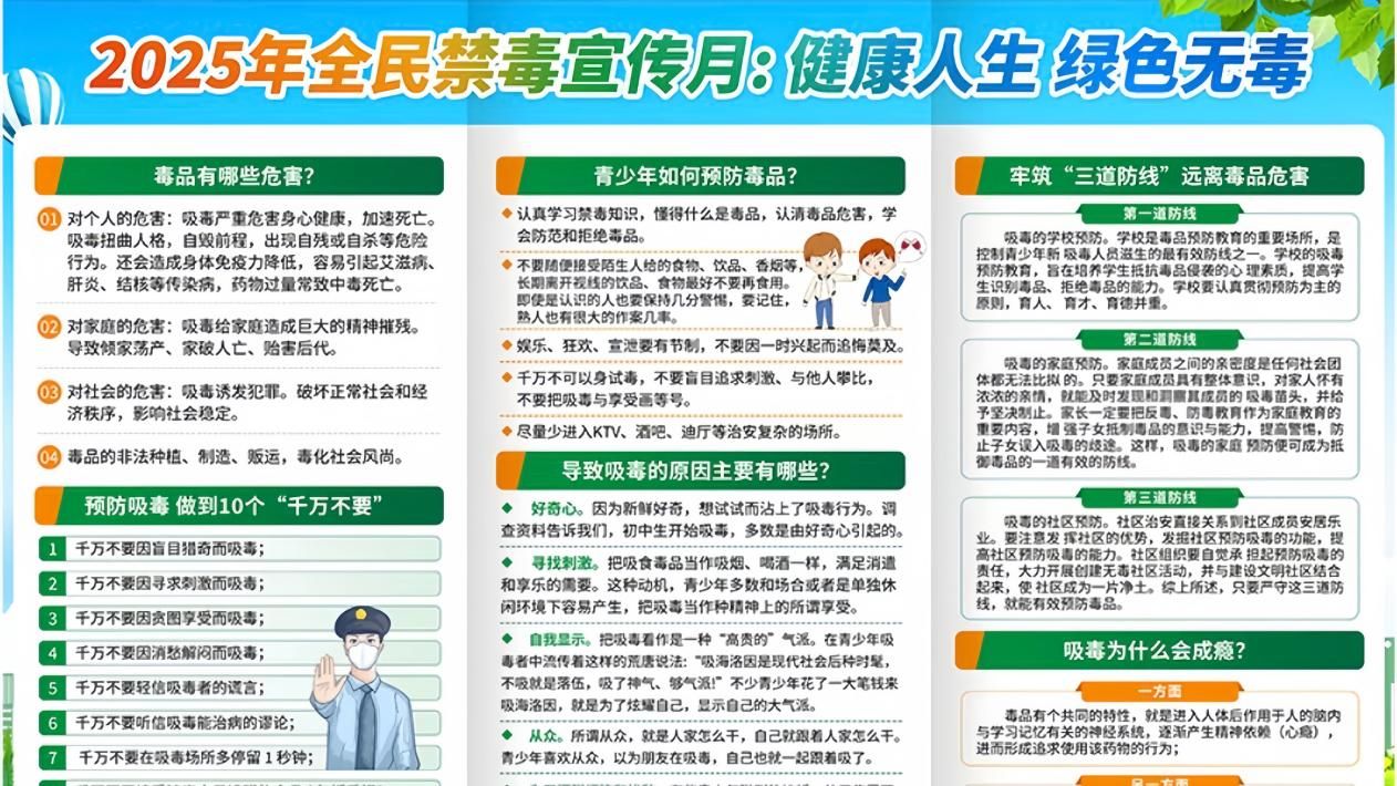 (通讯员 何良、黄熠韬)为教育引导广大青少年正确认识毒品危害,切实增强青少年法治素养和识毒、防毒、拒毒意识和能力,2025年7月-8月,太阳集团tyc151“禁毒耀法治,网安万里行”社会实践队,深入社区和乡村开展暑期“三下乡”法治禁毒专项实践活动。