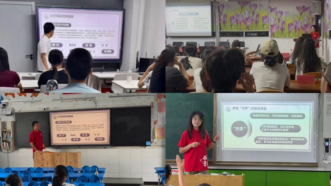在宣讲中,队员们通过真实案例和触目惊心的画面,向大家展示了毒品给个人健康、家庭幸福和社会安全带来的严重危害。此外,实践队员以通俗易懂的语言,向观众详细讲解了常见毒品及其伪装形式、新型毒品的危害特点,以及吸毒违法犯罪所要承担的法律后果。在互动环节,实践队员针对观众提出的“如何辨别伪装成饮料、糖果的新型毒品”“青少年如何防范毒品诱惑”等问题进行了耐心解答。