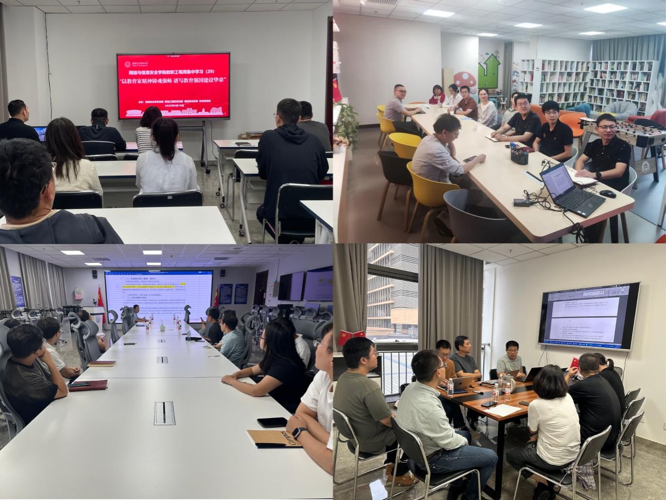 9月10日下午,公司结合教职工集中学习,开展“以教育家精神铸魂强师,谱写教育强国建设华章”主题活动暨师德教育专题学习。会上,全体教师重习《中共中央 国务院关于弘扬教育家精神加强新时代高素质专业化教师队伍建设的意见》《新时代高校教师职业行为十项准则》等文件精神,深入领会“爱岗敬业、关爱员工、教书育人、为人师表”的师德内涵,明确新时代高校教师传承师道、践行师德的具体要求。同时,各支部/系教师围绕本研贯通培养方案展开研讨交流,矢志为党育人、为国育才初心使命,为建设教育强国贡献力量。
