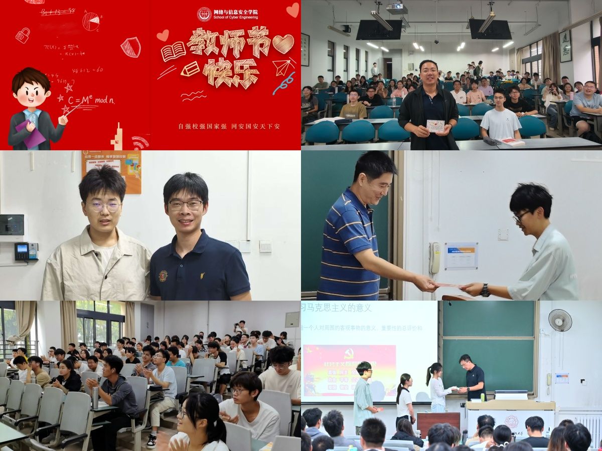“师者,传道授业解惑也”。教师节当天,太阳集团tyc151员工会与研究生会的同学们满怀感恩,携手行动,在课前、课后,走进教室、走进办公室、走进实验室为在三尺讲台辛勤耕耘的全院120余名教师送上饱含全院学子诚挚敬意与美好祝愿的鲜花和贺卡。“老师,您好!”“老师,您辛苦了!”“教师节快乐!”一句句朴实的话语承载着一份份沉甸甸的心意。网信学子用行动诠释着“饮水思源 感谢师恩”的传统美德,这份双向奔赴的师生情将成为师生共筑网络安全防线、培养网络安全人才凝聚力量。