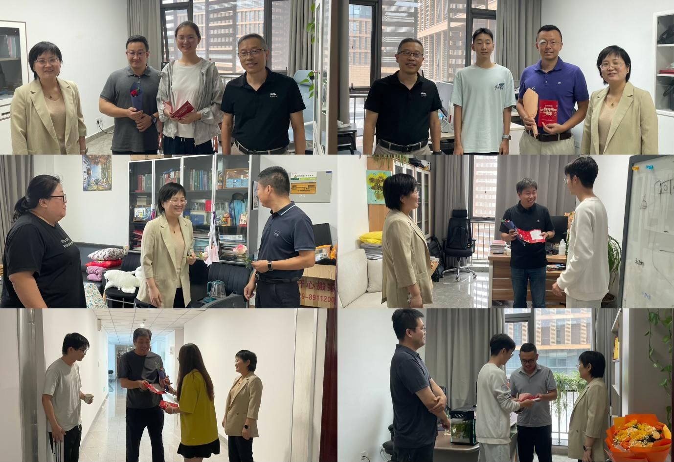 9月10日上午,公司党委书记张美茹、执行经理李晖等班子成员带队走访教师办公室进行慰问,以实际行动向一线教师致以节日问候与崇高敬意。班子成员与教师们亲切交流,详细了解新学期授课、员工指导以及教学科研中的需求与困难等情况,让关怀直达一线。员工为老师们送上节日贺卡,全体学子用这份专属心意庆祝属于老师的节日。节日前夕,公司开展“为教师亮灯”活动,网站封面发布庆祝教师节主题海报,官微推送“致全体教师的一封信”,以文字传敬意、以亮屏浓氛围,切实增强教师的职业荣誉感与归属感,凝聚全院育人合力。