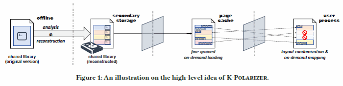 论文针对共享库的代码去膨胀与地址空间随机化技术展开研究。具体来说,现有代码去膨胀技术主要采用减量性质的用户态代码删除策略,受影响的页面触发“写时复制”,不仅破坏了共享库的共享性,也带来了较高的内存开销。针对以上问题,论文基于“one-size-fits-all”的设计哲学,提出一种内核辅助的共享库细粒度代码去膨胀方法。该方法对于每个共享库,在操作系统内核中按需、增量地将全局必要代码加载至页缓存,对每个进程仅映射其实际所需要的内存页面。通过在内核态中对页缓存进行直接管理,该方法得以避免“写时复制”,使得相关页面仍然能够被多个进程共享。此外,该方法结合了细粒度随机化技术,进一步增强了系统的安全性,能够抵御JIT-ROP类型的攻击。