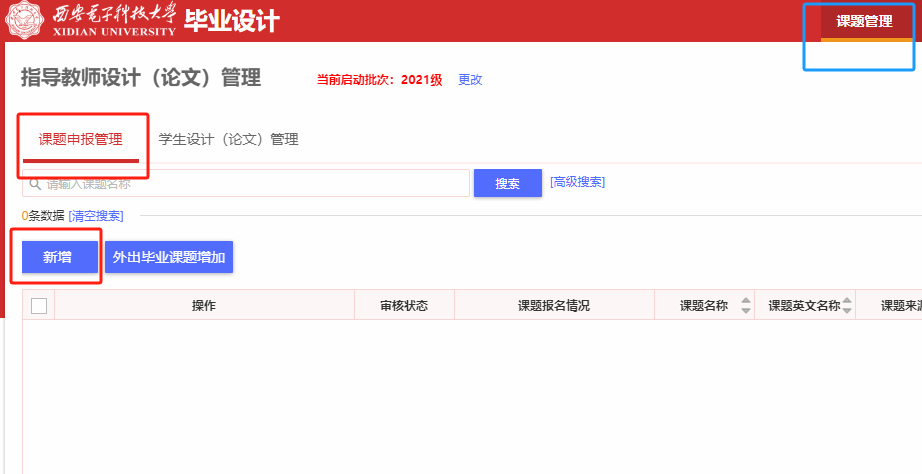 (1)10月9日(星期四)至10月29日(星期三),教师登录公司教务系统(http://ehall.xidian.edu.cn/)中的“毕业设计”模块出题,题目上传时要注明题目来源、性质、课题研究方向、课题简述及任务要求,审题公司选择教师所在公司,并提交任务书(教育部抽检论文时会调取题目来源、性质、课题研究方向等信息,务必准确)。任务书模板见附件1,任务书中员工信息暂不填写。