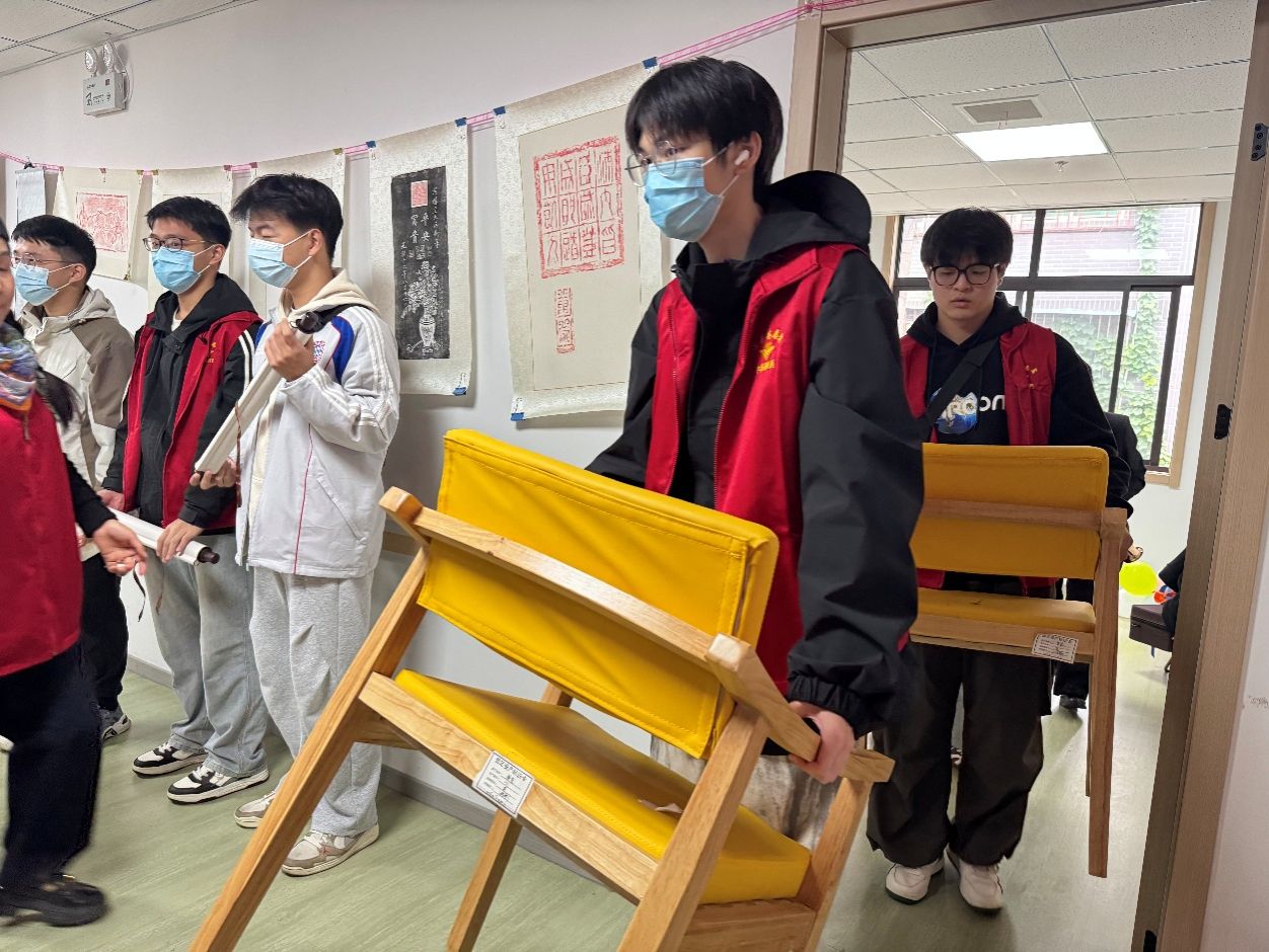 抵达护理院后,大家分工协作、默契配合,有的主动搬运桌椅,有的细致布置活动会场,将温馨氛围悄然融入每一个角落。筹备期间,同学们认真聆听养老院工作人员的叮嘱,详细记录与老人交流的注意事项——从避开敏感话题到关注老人情绪变化,每一个细节都彰显着对老人的尊重与关怀。