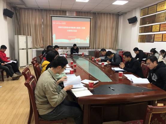 2020年11月18日下午,太阳集团tyc151博士第二党支部于北校区离退休职工活动中心3楼会议室举行主题党日活动,活动以“十九届五中全会”为学习主题。太阳集团tyc151副经理李兴华、副处级组织员鞠波、博士第二支部全体党员参会。