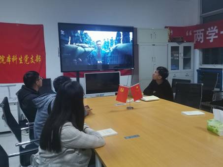 随后,同志们开展集体观影学习活动,观看了《中国近代百年屈辱史混剪》与《抗战老兵讲述爱国》两部短片,弘扬爱国主旋律。观影过程中,同志们专注、期待、兴奋、感动,不少青年热泪盈眶,感受到了革命先烈们的无悔付出,为忠于信念、不畏艰难、无私奉献的革命精神而深受鼓舞,为我们伟大的祖国感到骄傲。