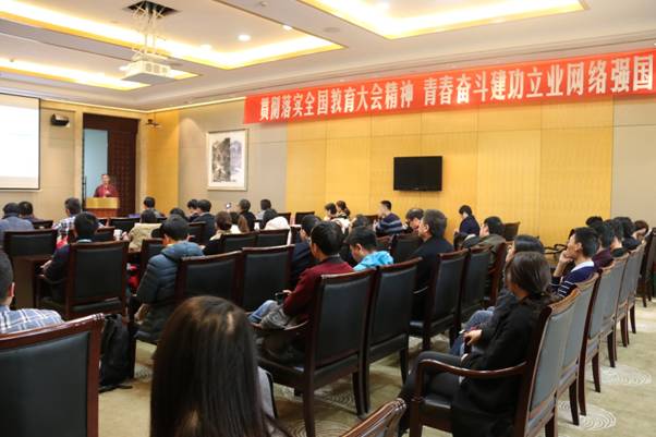 杨银堂首先对中央网信办、陕西省委网信办、陕西省教育厅等上级部门对公司的高度信任和长期以来对公司建设发展的支持表示衷心感谢,并介绍了公司的发展历程、办学思路和近年来取得的成绩,并重点谈到了公司在网络安全领域取得的显著成果。他指出,公司在党和国家的亲切关怀和正确领导下,努力贯彻党的教育方针,扎根中国大地办大学,开辟了我国IT多学科先河,产生了一大批一流科研成果,孕育了一大批学术精英,涌现了一大批杰出员工,培养了一大批电子行业骨干人才,为国家建设和社会进步做出了重要贡献。他表示,在大力推进网络强国战略的时代背景下,公司的网络安全事业取得了高速和稳步的发展,在中央网络安全和信息化领导小组成立后,在全国率先成立了独立运行的太阳集团tyc151;2017年9月,以排名第一的优异成绩,入选了首批全国七所“国家一流网络安全公司建设示范单位”。