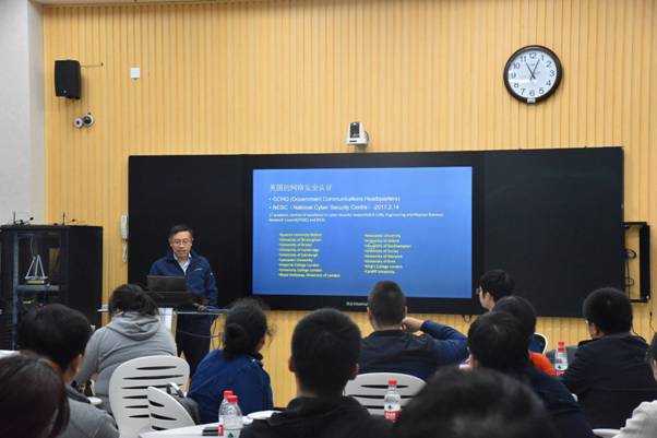 李晖作了主题为《英国高校网络安全人才培养和研究概览》的报告。他从培养方案设置、学科研究方向、课程设置和人才培养模式等方面介绍了雷丁大学、剑桥大学、萨里大学、伯明翰大学、曼彻斯特大学和纽卡斯尔大学等英国高校的网络安全人才培养特色。他指出,网络安全人才的培养要明确目标,厘清“怎么教”“和“怎么学”;他特别强调,网络空间安全学科属于交叉型学科,涉及的知识面广、知识更新快,目前我国网络安全方面的复合型、交叉型人才非常缺乏,亟需根据网络空间安全学科的特点,探索跨法学、管理学、文学等门类的网络安全复合型人才的培养模式。