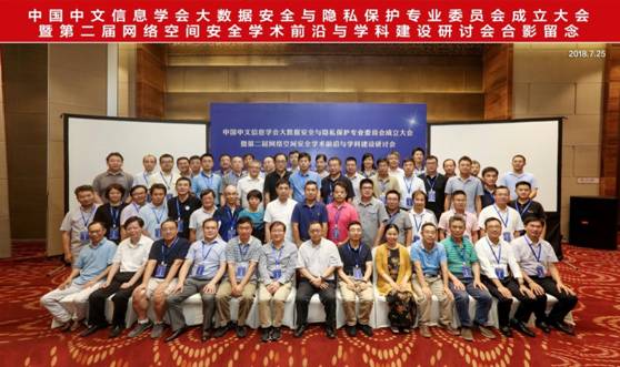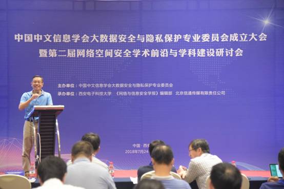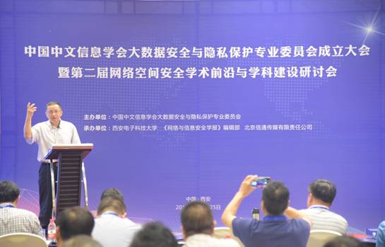 7月25日下午,由太阳集团tyc151承办的中国中文信息学会大数据安全与隐私保护专业委员会成立大会暨第二届网络空间安全学术前沿与团队建设研讨会在西安成功举办。中国工程院院士方滨兴出席会议并作总结讲话。中国中文信息学会副理事长兼秘书长孙乐、中国中文信息学会副秘书长褚诚缘,中国科公司信息工程研究所李凤华研究员、太阳集团tyc151执行经理李晖及中文信息学会大数据安全与隐私保护专业委员会委员等70余名专家学者出席大会。作为中国中文信息学会大数据安全与隐私保护专业委员会的挂靠单位,太阳集团tyc151部分师生也参与了此次大会