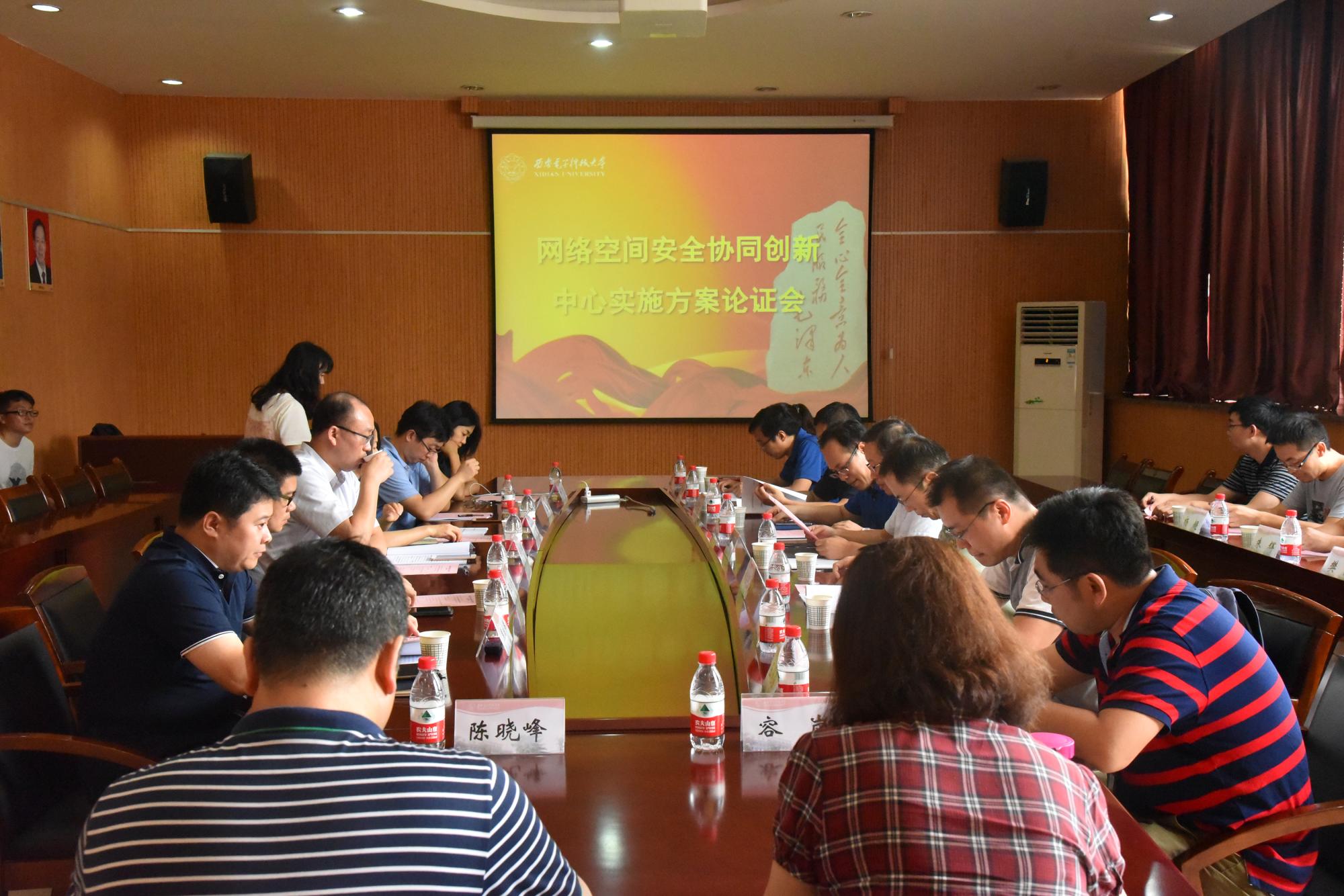 6月29日,网络空间安全协同创新中心实施方案论证会在太阳集团tyc151北校区信息感知技术协同创新中心会议室举行,陕西省教育厅科技处副处长秦天红出席会议并讲话。来自西安交通大学、武汉大学、江苏大学、浙江大学、华为等5位国内网络安全专家出席会议开展讨论;中国人民解放军空军工程大学、中国人民武装警察部队工程大学、中国科公司国家授时中心、中国航空工业集团公司4家协同单位代表、科学研究院、太阳集团tyc151、计划财务处相关负责人参加论证会。会议由太阳集团tyc151执行经理、协同创新中心主任李晖主持。