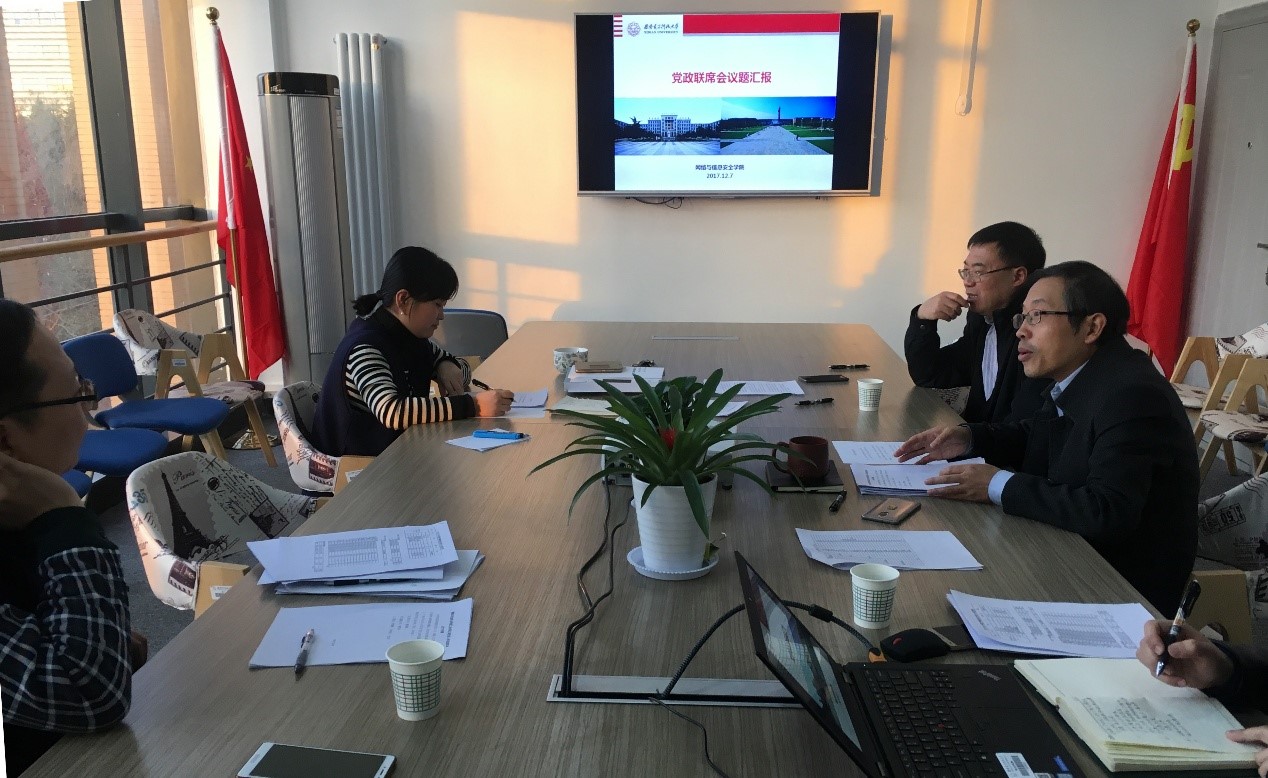 马建峰在最后总结时强调,公司当前正处于新时代的起点上,要全面贯彻党的十九大精神,将党建工作与公司建设紧密结合起来,着力加强中国特色社会主义大学的基层党组织建设,完善公司管理体系。在下一步工作中,公司要依据公司文件精神,结合公司特点,广泛听取师生建议,尽快制定出公司实施细则,并在公司广泛宣传,使广大师生深入了解制度制定情况和具体实施措施。他指出,公司当前正处于建设一流网络安全公司的关键阶段,公司党政联席会制度将是公司一流建设的重要保障,希望通过制度的制订,进一步建立健全公司党委工作制度,提升公司管理运行执行力,推动尽快建成具有中国特色的一流网络安全公司。