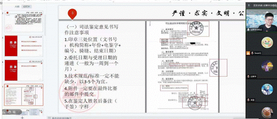 庄新宇同学基于以前的参赛经验详细介绍了电子数据取证常见法律法规及公安机关取证流程介绍和司法鉴定意见书的撰写注意事项。参赛队员们在有限的时间内抓紧学习了相关知识,做好充足的赛前准备,扎实备赛,做到了以赛促学。