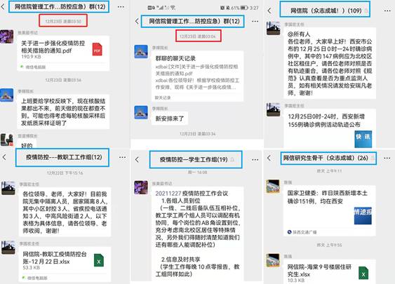 研究生各支部积极动员,支部成员及员工骨干迅速响应、到岗到位,尽职尽责为同学们服务。根据管控区域,建立南校区家属区员工互助群、北校区研究生互助群,同舟共济、守望相助。