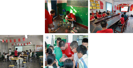 在蒲城的短短十天,实践队员们还广泛沟通协调校内外资源。实践队先后入选共青团中央关爱农村留守儿童“七彩假期”志愿服务项目和“圆梦工程”服务农村未成年人传承优秀传统文化志愿服务团队。校团委为实践队提供了“小小科学家”系列科技实验课程。实践队还同西安明德理工公司“三下乡”暑期实践团队的同学们共同合作,为孩子们带来了中国非遗传统文化扎染艺术课程。实践队员范培栋、陈茵茵成为了孝通小学机器人社团的教练,在支教期间主动加班加点,给八月份即将参加世界机器人大赛的小员工们进行辅导。