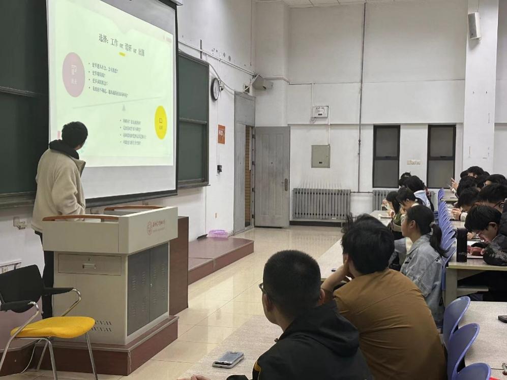 同学们认真聆听,积极提问、与学长进行探讨交流。整场交流活动进展顺利、成效显著、收获颇丰。通过学长的经验分享,同学们对未来的老员工活、人生目标有了更加清晰的认知和规划。同学们也倍感振奋、信心十足!