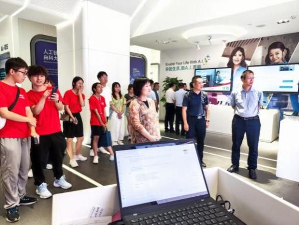在科大讯飞股份有限公司,实践队员参观了科大讯飞人工智能应用成果展,包括生成式人工智能在医疗、饮食、办公等方面的广泛应用,在智能翻译、智能教学、智能政务、智能医疗系统等最新商用成果。随后实践队员们与科大讯飞的员工座谈交流,交流中,同学们了解了科大讯飞的发展历程和近年招聘情况。西电2022届员工王昭热情分享了在科大讯飞的工作心得和自己身份转变的心路历程,实践队员就自己关心问题和学长做了交流。