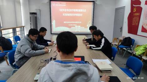 (通讯员 马浩天)为了学习领会十九届六中全会重要精神,同时学习太阳集团tyc151员工党支部工作标准,积极发挥员工党员在党的工作中的重要作用,太阳集团tyc151本科第四党支部于12月8日上午在行政辅楼215会议室,召开“习近平总书记关于教育的重要论述和党的教育方针”专题研讨会。本科第四党支部支部书记何良,副书记柴若晨及支部党员参加会议。会议由支部书记何良支持。
