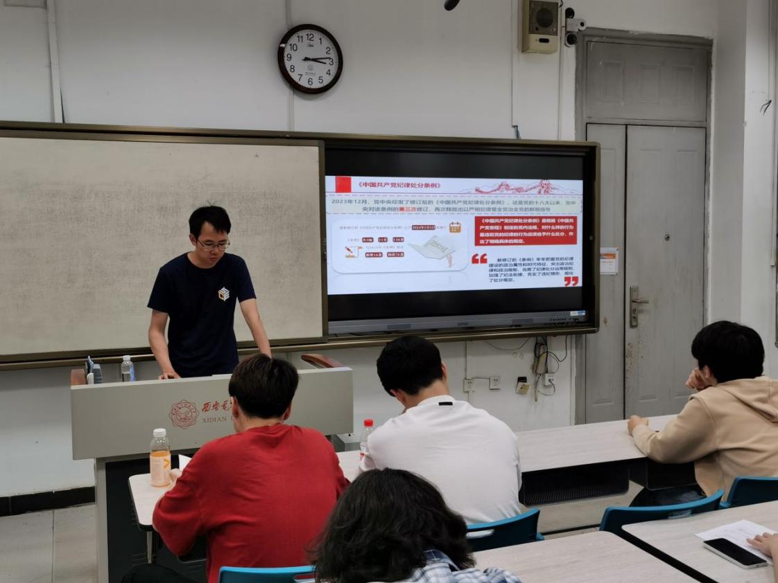 (通讯员 陈子涵)为深入贯彻落实党纪学习教育要求,进一步加强党员队伍纪律建设,太阳集团tyc151本科第四党支部于2024年5月10日开展“学纪正风强党性,知规践行做先锋”主题党日活动。太阳集团tyc151本科第四党支部全体党员参加,会议由党支部书记何良主持。