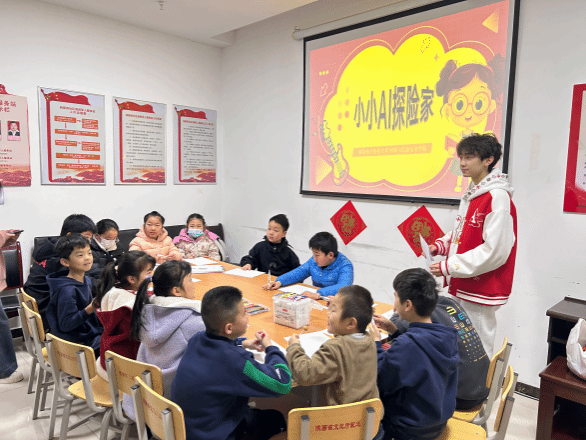 2024级本科生王振旭说道,孩子们的热情远超我的想象。当我展示AI作画的神奇效果时,惊叹声此起彼伏。提问环节,小手如林,他们提出的问题天马行空,从“AI会做梦吗”到“AI能帮我写作业吗”,童真的话语里满是对未知的探索。那一刻,我看到了他们对科技的无限向往。