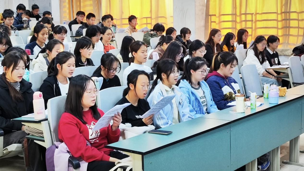 2024级密码科学与技术实验班本科新生李施楼:在排练《四渡赤水出奇兵》的近月余时间中,合唱团的同学齐心协力,在老师的指导下一遍一遍追求卓越,追求着将长征精神洋溢在歌声中。每当唱到“亲人送水来解渴”,当年军民一心的场面又似乎重现在眼前,而唱到“横断山,路难行”,歌声中磅礴的气势让我们似乎重回长征路上。一首红歌,一个时代,一遍一遍地歌唱,便是一代一代的记忆和敬意。