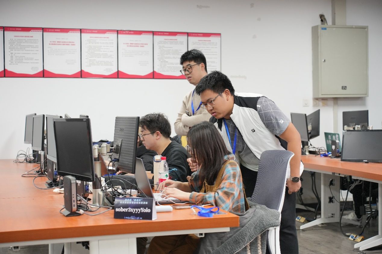 在比赛过程中,鹏城实验室深圳主赛场与西安分赛场同屏互动,分享了各分赛场的答题实况,展示了各赛场参赛选手的动态积分,保证比赛的公平公正。
