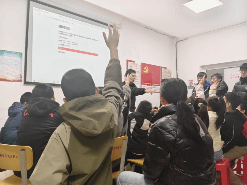 活动第二个环节,孩子们在志愿者的引领下兴致勃勃地投入到了猜数字的游戏,孩子们在志愿者的引导下一步步缩小区间,最终成功地猜到数字,在互动过程中孩子们开始思考密码的安全性问题。