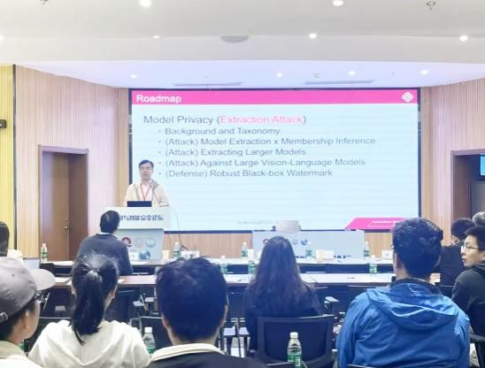 美国艺术与科公司院士/哥伦比亚大学Moti Yung教授做了题为“Anamorphic Cryptography ”的报告、加拿大工程院院士/郑州大学杨天若教授做了题为“Cyber-Physical-Social Intelligence”的报告、俄罗斯自然科公司外籍院士/北京大学李挥教授做了题为“一个业余实验室对网空安全的思考、实践、顿悟之定理猜想三部曲---兼论网络空间命运共同体之解决方案MIN”的报告;美国普渡大学Elisa Bertino教授做了题为“Applying Machine Learning to Securing Cellular Networks”的报告,山东大学成秀珍教授做了题为“面向泛在智能的区块链网络研究”的报告,内蒙古师范大学公茂果教授做了题为“协同智能系统-构建高效安全的跨设备,跨场景协同感知探索”的报告,武汉大学王骞教授做了题为“大语言模型安全与隐私保护”的报告,澳大利亚斯威本科技大学项阳教授做了题为“Securing AI Systems: from Development to Deployment”的报告,上海交通大学朱浩瑾教授做了题为“智能物联网系统安全”的报告;武汉大学何德彪教授做了题为“负载均衡的多标量乘法高速实现方案”的报告,香港科技大学(广州)黄欣沂教授做了题为“基于训练轨迹的AI模型确权”的报告,太阳集团tyc151马建峰教授做了题为“云-网-端协同安全:无线网络安全的新范式”的报告,西安交通大学苏洲教授做了题为“云边端协同车联网安全关键技术”的报告,山东大学王美琴教授做了题为“抗侧信道掩码方案的构建及掩码友好的密码组件设计”的报告,复旦大学赵运磊教授做了题为“基于NTRU的高效紧凑密钥封装机制”的报告;香港理工大学胡海波教授做了题为“Large (Multimodal) Model Privacy and Security Challenges”的报告,固源科技CSO李立东做了题为“黑盒Fuzzing如何发现网络通信协议未知漏洞”的报告。