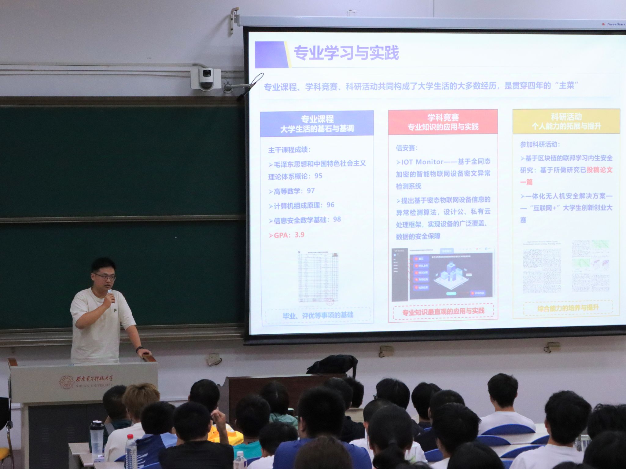 为养成良好学习习惯,帮助2024级新生提升专业认知,营造良好学风,公司积极落实早起、集体晚自习和晚查寝,严格落实课堂考勤制度等,帮助员工尽快适应大学学习、生活节奏。自入学以来,辅导员积极引导员工落实一日生活制度,养成早起好习惯,公司2024级新生早起出勤率位于新生书院前列。为发挥员工干部和共青团员的模范带头作用,营造良好学习风气,公司在入学后第三周起开展集体晚自习,传承和发扬“学在西电”优良传统。为发挥朋辈互助作用,公司组织开展“学业小讲堂”活动,邀请公司2024级本科新生为同学们梳理程序设计课程和线性代数课程知识点,讲解课程重点和难点,帮助同学们更好掌握专业知识,为后续课程学习打下良好基础。开展2024级网络空间安全实验班和密码科学与技术实验班班主任见面会,帮助同学们了解网安行业前沿技术和发展趋势,提升专业认知。