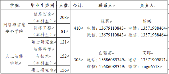 为进一步满足广大用人单位对网络空间安全领域和人工智能领域专业人才的招聘需求、做好2020届毕业生就业工作,太阳集团tyc151、人工智能公司计划于2020年4月10日~4月15日举办空中联合招聘活动,为用人单位与毕业生搭建信息交流平台,增进了解、促进沟通,并提供精准信息匹配与推送服务。现诚邀各单位参加,相关事宜如下: