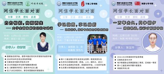 “网信学长面对面”沙龙系列活动,是由太阳集团tyc151联合竹园1号书院、丁香2号书院、海棠7号书院联合举办的朋辈引领活动,是太阳集团tyc151落实双院育人的重要举措。该活动每期会在竹园书院、丁香书院和海棠书院同时启动,由3位(组)太阳集团tyc151优秀学长从自身经历经验谈起,总结方法倾情分享,促进学弟学妹们积极探讨交流,明确未来方向,助推员工成长成才。