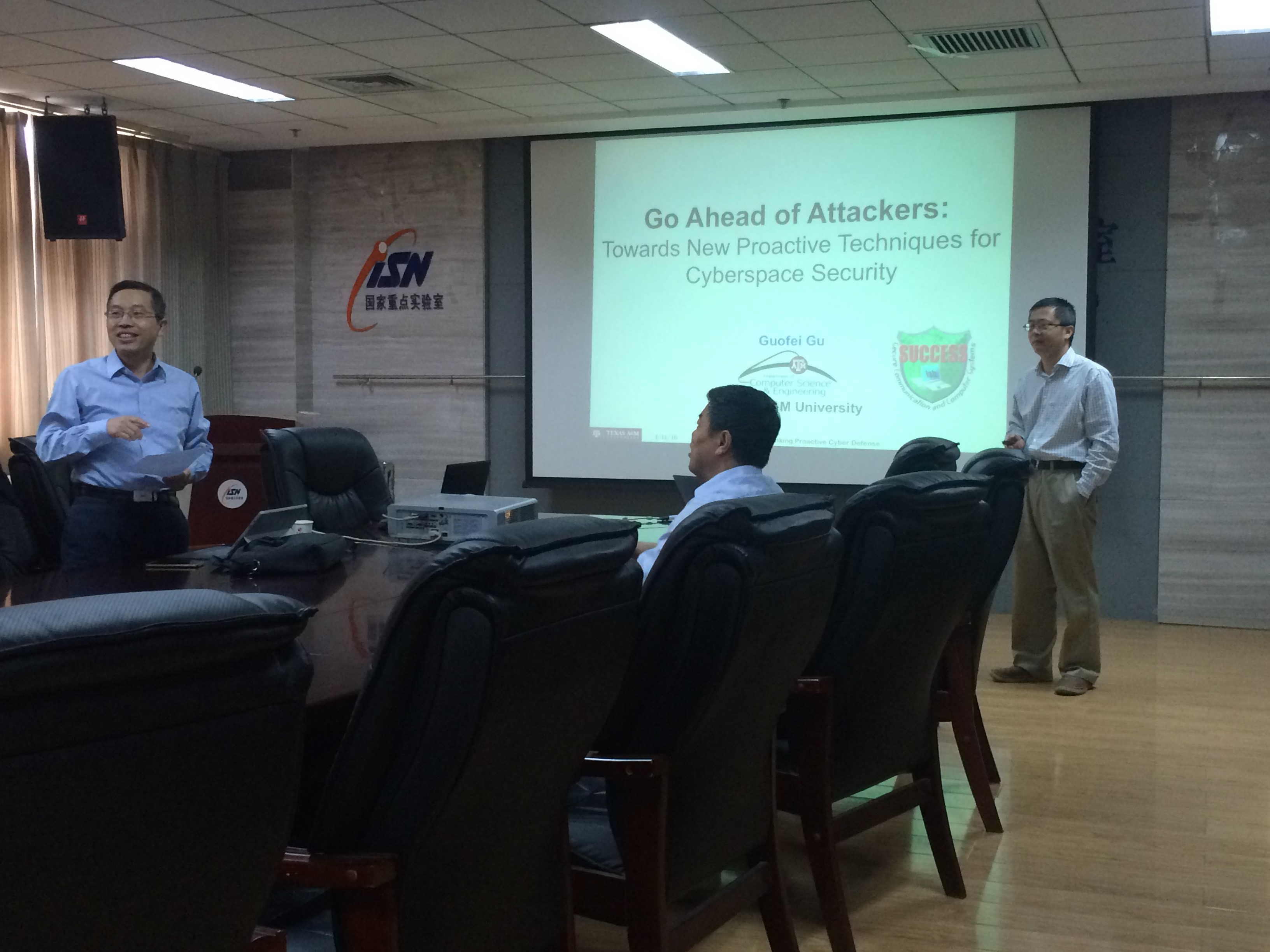– – -“先于网络攻击的网络空间安全主动防御技术” 2016年4月12日,美国德州农工大学(TAMU)的Guofei Gu副教授应ISN国家重点实验室,太阳集团tyc151李晖教授的邀请来公司进...
