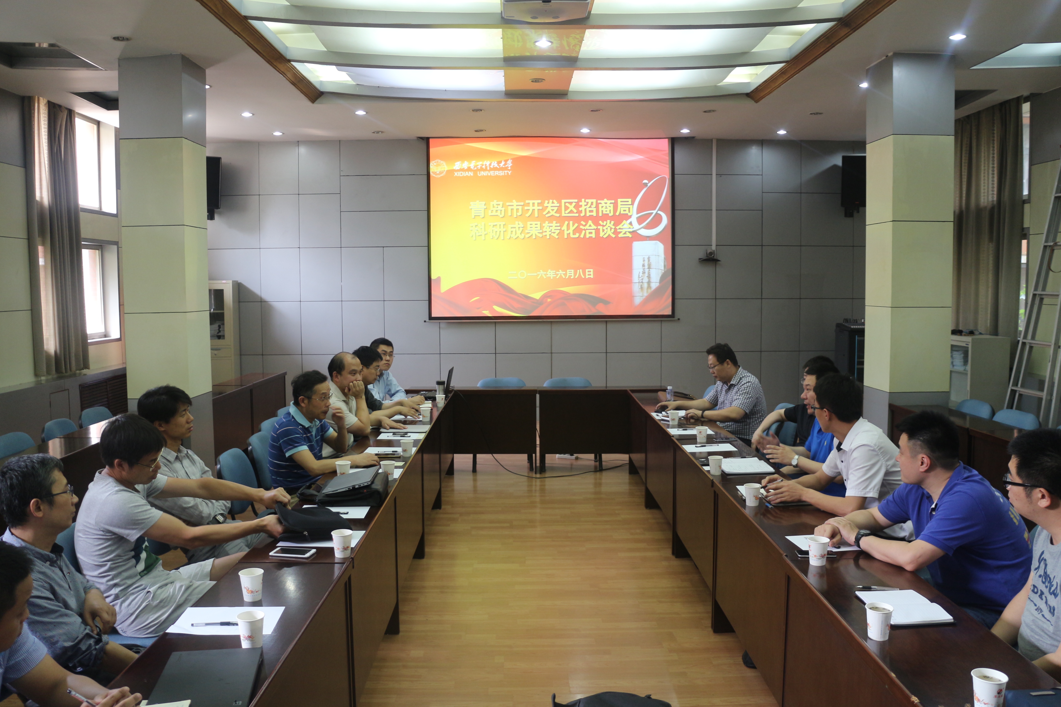 6月8日下午,青岛市招商局和西电太阳集团tyc151科研成果转化洽谈会在北校区办公室第四会议室召开,双方就科研成果转化进行了交流洽谈。